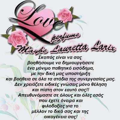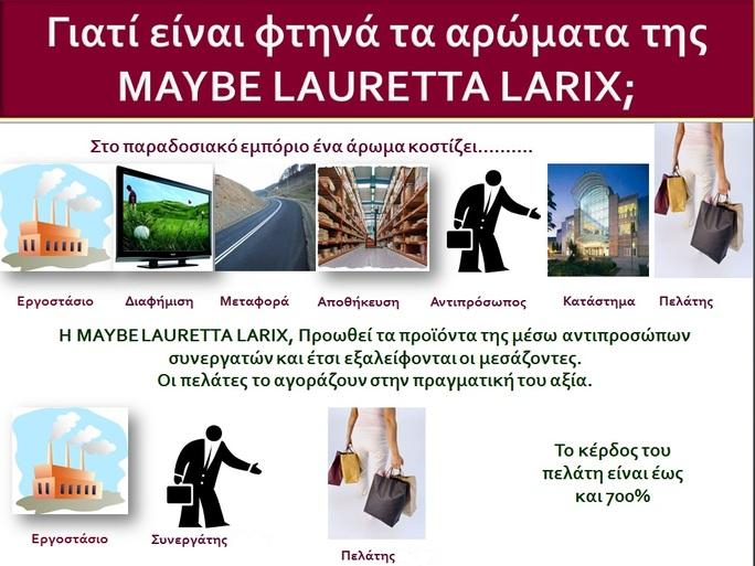 Πολυτελή κατηγορία PΕRFUMS, για τη γυναίκα και τον άνδρα!!! Απολαύστε τον αισθησιασμό και την καθαρότητα των επώνυμων αρωμάτων της Maybe Lauretta Larix!!!